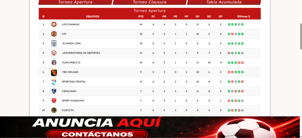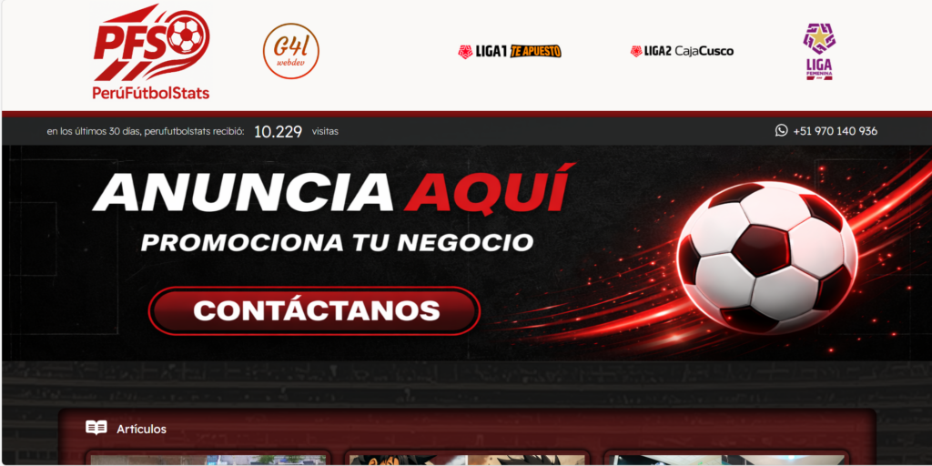 perufubtolstats es una nueva página sobre estadísticas y resultados de las ligas peruanas más importantes de fútbol. Con un crecimiento rápido, ha alcanzado más de 10 mil vistas cada 30 días de manera constante.